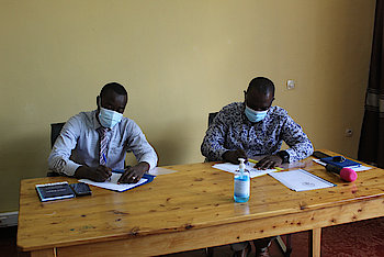 1. Mu gitondo, mu cyumba cy'inama cy'Akarere, Umuyobozi w'Akarere ari kumwe na Komite Nyobozi yayoboye inama yamuhuje na: