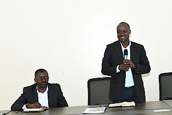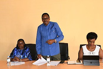 1. Habaye inama y'abakozi iyobowe n'Umuyobozi w'Akarere Jerome Rutaburingoga ari kumwe na VM ED Jean Paul Habineza.