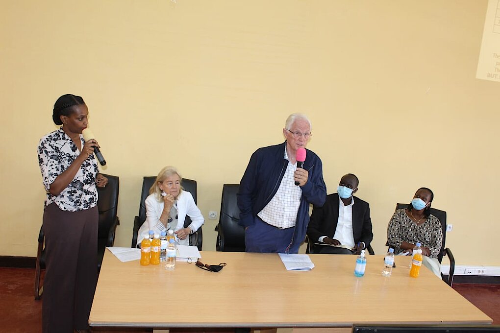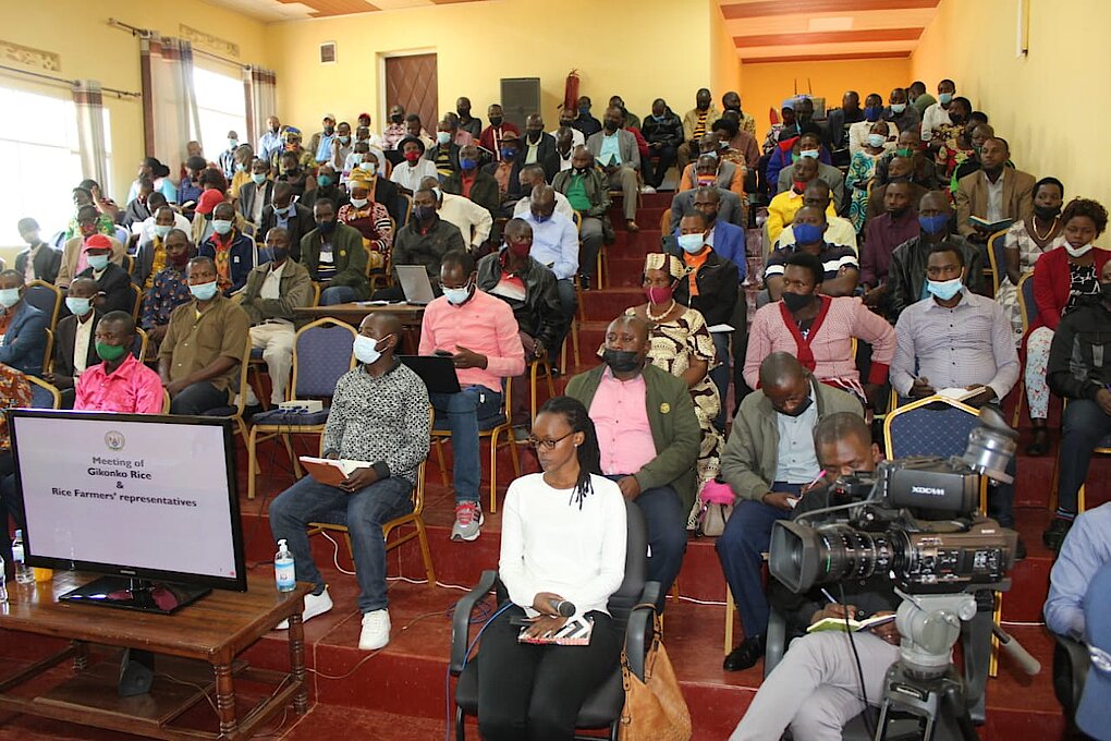 Mu cyumba cy'inama cy'Akarere hateraniye inama yahuje Ubuyobozi bw'Akarere, Chairman wa ICM Rwanda Agri Business Ltd DOUGLAS STEPHEN SHEARS, umugore we n'itsinda bari kumwe, abakozi b’uruganda rw’umuceri (Gikonko rice), Ihuriro ry’amakoperative ahinga umuceri rya UCORIBU n'abayobozi b'Amakoperative agize iryo huriro baturuka mu Turere twa Huye, Nyanza na Gisagara.