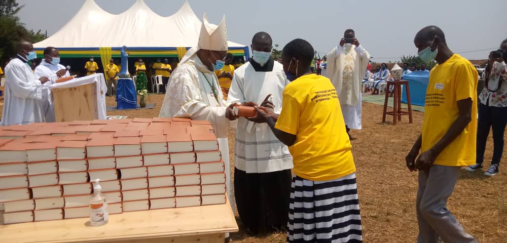 ▪ Umuhango watangijwe n'igitambo cya Misa yasomwe na Musenyeri wa diyosezi ya Butare Msgr Rukamba Philipo hanatangwa bibiliya ku bantu bose bitabiriye icyo gikorwa cy'isanamitima.