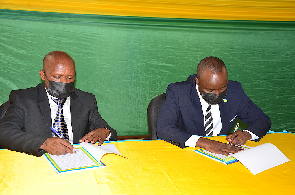 ▪ Nyuma yo kurahira, habaye igikorwa cy'ihererekanyabubasha hagati y'Umuyobozi w'Umusigire w'Akarere akaba n'umunyamabanga Nshingwabikorwa w'Akarere Athanase Ntaganzwa n'Umuyobozi w'Akarere mushya Rutaburingoga Jerome