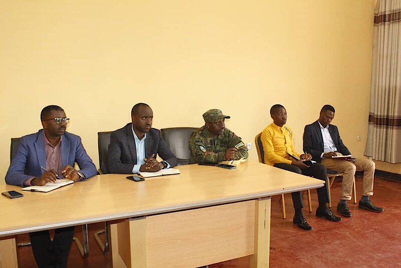 1. Mu rwego rwo gufasha abakozi bashya kwinjira neza mu kazi, mu gitondo, Umuyobozi w'Akarere Jerome Rutaburingoga yayoboye ibiganiro byahuje Komite Nyobozi, abayobozi b'inzego z'umutekano ku rwego rw'Akarere, Abanyamabanga Nshingwabikorwa b'Imirenge n'abakozi bashya 2 bagiye kuyobora Imirenge ya Gishubi na Kibilizi.