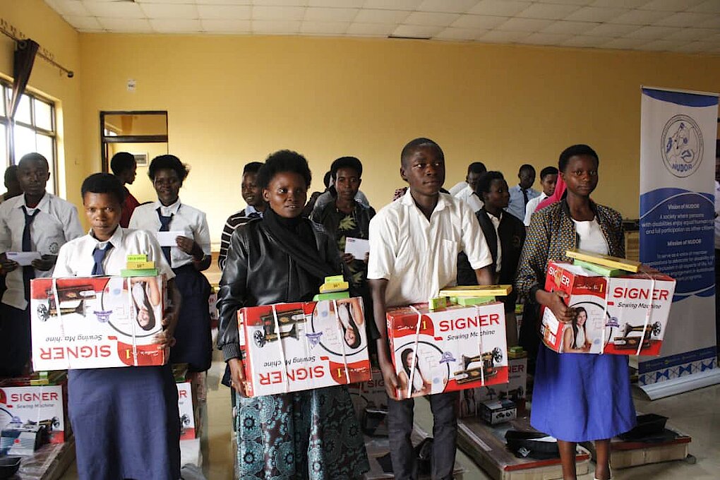 2. Ku bufatanye na UNDP, NUDOR yashyize mu bikorwa umushinga wo Guteza imbere ubumenyi n'ubushobozi bw'abantu bafite ubumuga mu Karere ka Gisagara, aho abanyeshuri 50 bafite ubumuga bigishijwe imyuga y'ubudozi, kubaza no gutunganya imisatsi.