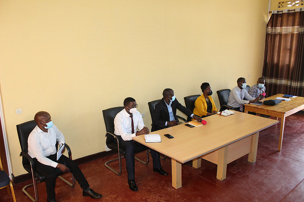 4. VM AFSO ari kumwe n'Abakozi b'Akarere ( Director G.Governance, YSC officer, Cooperative Officer) yakiriye itsinda ry'Abafatanyabikorwa riyobowe n' Umuyobozi wa Cartas Butare Padiri Gilbert akaba yari kumwe n'Abakozi b'Umushinga Gera ku ntego Rubyiruko.