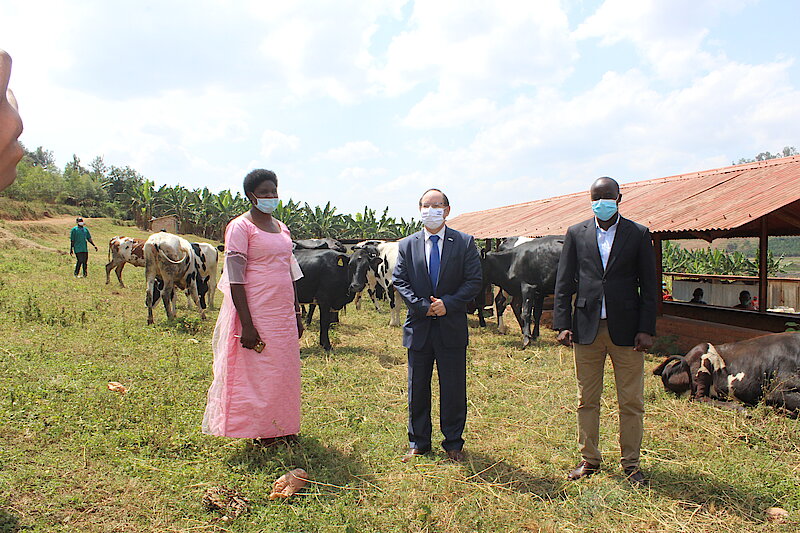 Umuyobozi w’Akarere Jerome Rutaburingoga yashimiye Ambasaderi wa Israël mu Rwanda, Ron Adam kuba umufatanyabikorwa mwiza mu iterambere n’imibereho myiza by’abaturage kuko ziriya nka yahaye abatishoboye zizabafasha kuva mu cyiciro kimwe bajya mu kindi (graduation).